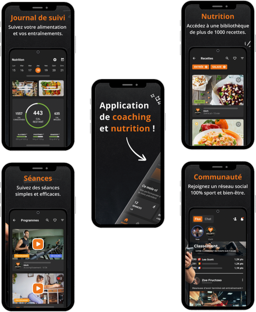 Un accompagnement digital structuré pour suivre votre programme sportif et nutritionnel, garder le cap et progresser avec plus de régularité.